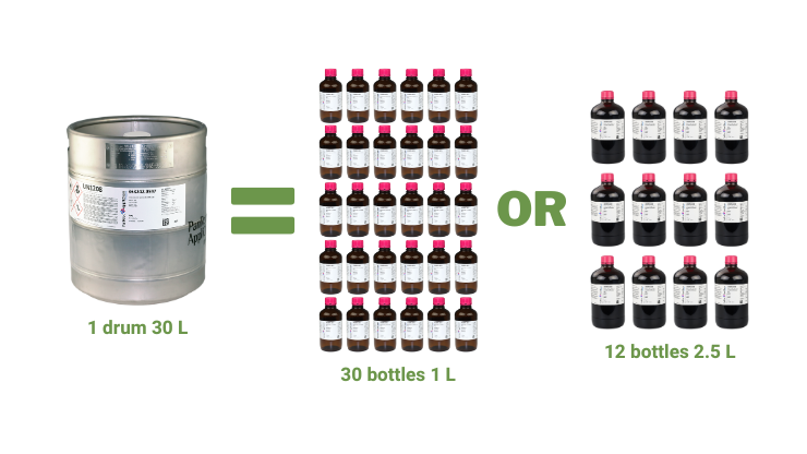 To guarantee the solvent quality, the empty drum is cleaned, filled with solvent and controlled on an individual basis.